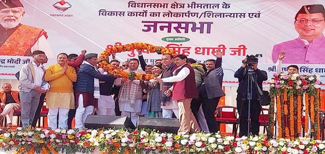 भीमताल/लालकुआँ/हल्दूचौड़। धारी ब्लॉक स्थित हिमगिरि स्टेडियम, लेटीबुंगा में शुक्रवार को मुख्यमंत्री पुष्कर सिंह धामी ने विशाल जनसभा को संबोधित करते हुए जिले, विशेषकर लालकुआँ और हल्दूचौड़ क्षेत्र, को नई दिशा देने वाली 112.34 करोड़ रुपये की 17 विकास परियोजनाओं का लोकार्पण और शिलान्यास किया।
